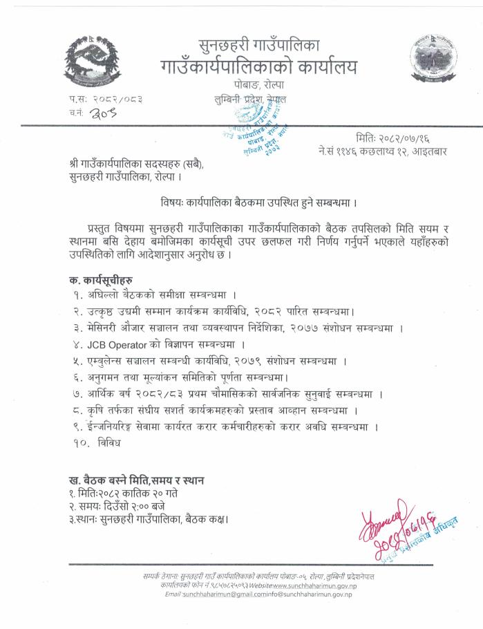 » कार्यपालिका बैठक सम्बन्धी सूचना l