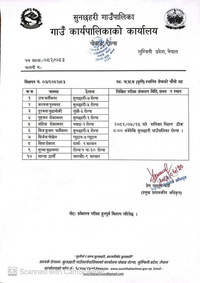 ना.प्रा.स(कृषि) चौथो तह पदको अन्तिम नतिजा प्रकाशन गरिएको सम्बन्धी सूचना ।
