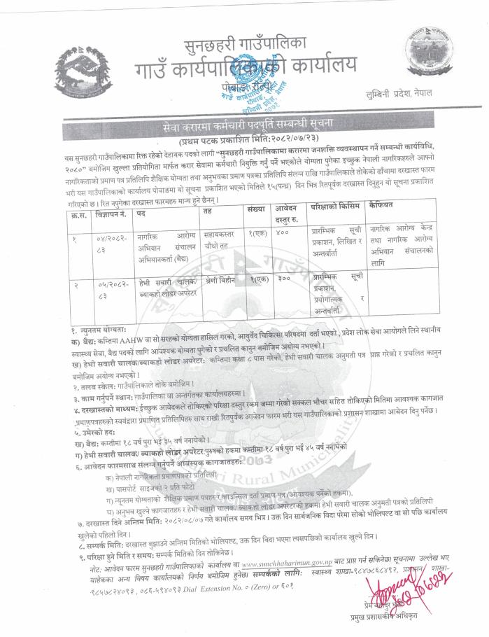 सेवा करारमा कर्मचारी पदपूर्ति सम्बन्धी सूचना l