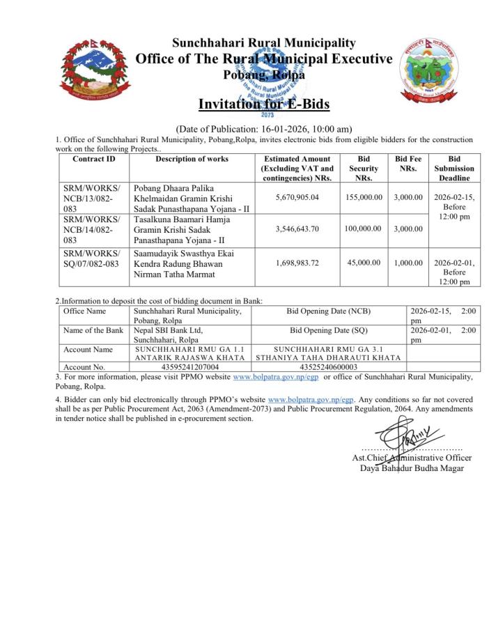 सार्वजनिक खरिद/बोलपत्र सूचना