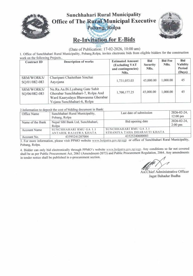 सार्वजनिक खरिद/बोलपत्र सूचना