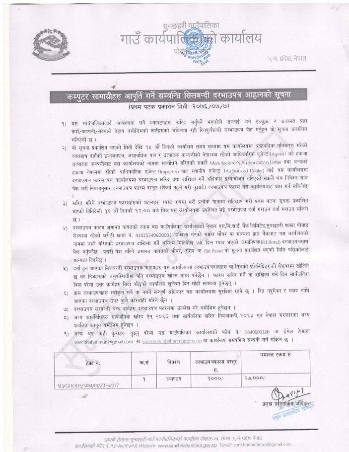 कम्पुटर सामाग्रीहरु आपूर्ति गर्ने सम्बन्धि सिलबन्दी दरभाउपत्र आह्वानको सूचना