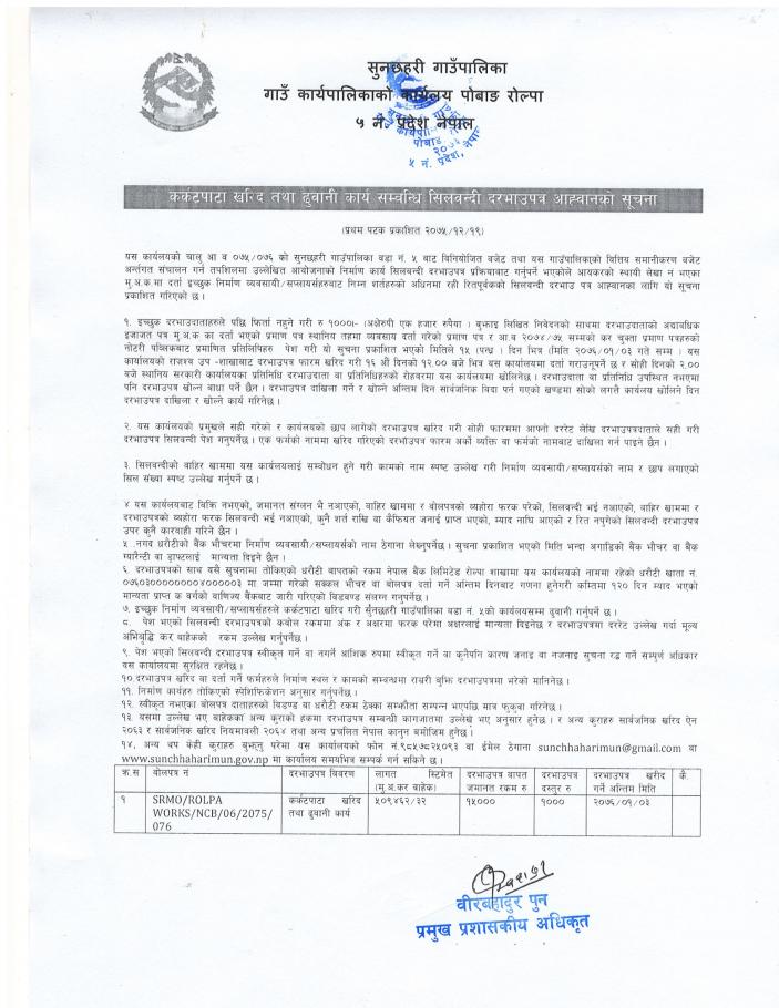 » कर्कट पाटा खरिद तथा ढुवानी सम्बन्धि सिलबन्दी दरभाउ पत्र आह्वानको सूचना