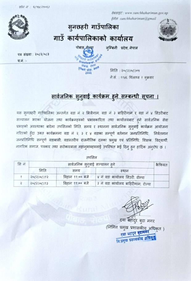 » सार्वजनिक सुनुवाई सम्बन्धी सूचना
