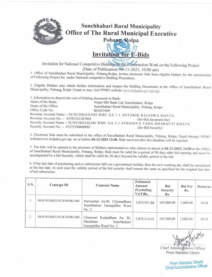 सार्वजनिक खरिद/बोलपत्र सूचना