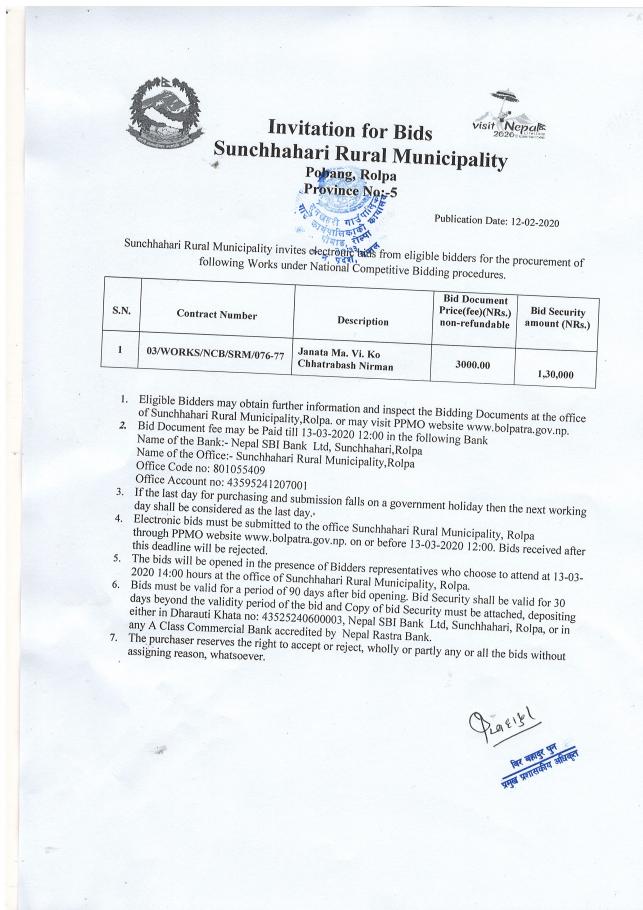 सार्वजनिक खरिद/बोलपत्र सूचना