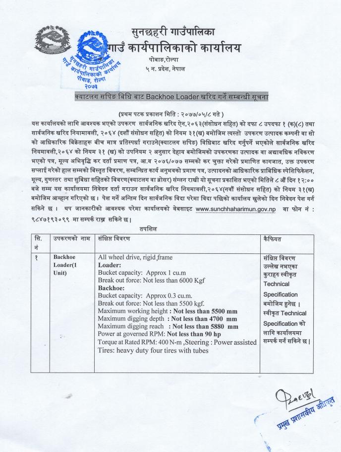 » क्याटलग सपिङ बिधिबाट Backhoe Loader खरिद गर्ने सम्बन्धि सूचना